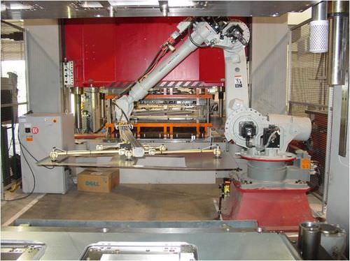 Robotic automation between tandem presses may not be the fastest solution, however for certain applications they provide the flexibility required. These applications may include an extremely large or heavy blank, the need for precise placement in the press or the requirement to turn a blank over prior to insertion into the press.