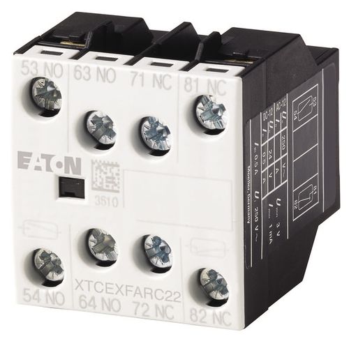 The DILA-XHIR22 front mounted auxiliary contacts allows users to switch small amount of signals efficiently. Present in the product is one-auxiliary with NO-contact and one-auxiliary NC-contact are embedded be micro switches. Serves effectively in various field application such as exchanging signals in electronic field and transmitting feedback in safety programs.