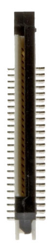 This FFC connector features a pitch of 0.5mm and an NY-9T UL 94V0 material insulator with PPS UL 94V0 actuator. The mechanical operating temperature ranges from -20 to +85 degrees Celsius. Materials include a phosphore bronze contact and tin plating. The insulation resistance is 50MΩ minimum and contact resistance is 20mΩ maximum.